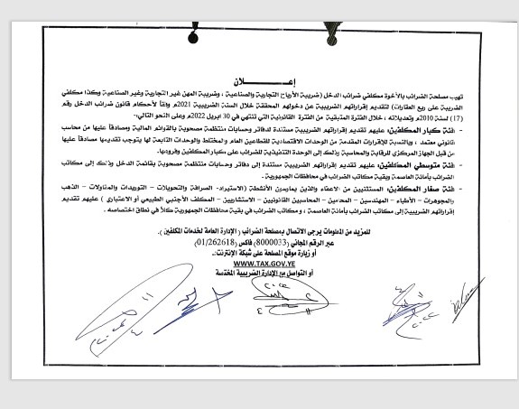 الادارة العامة لخدمات المكلفين والاقرار الضريبي تقر 30ابريل اخر موعد لتقديم الاقرار الضريبي أبريل 13, 2022 أبريل 13, 2022 اظهر المزيد فيسبوك تويتر لينكدإن بينتيريست VKontakte واتساب تيلقرام مشاركة عبر البريد طباعة