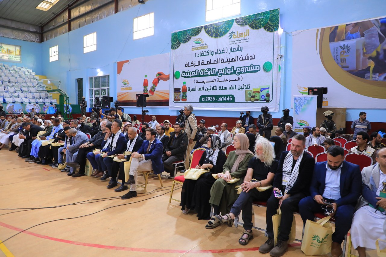 وفي التدشين رحب رئيس الهيئة العامة للزكاة الشيخ شمسان محسن أبو نشطان، بضيوف اليمن الأعزاء طليعة الأحرار في هذه الأمة والعالم وصوت الإنسانية الذي يصرخ في زمن الصمت ضد الظلم والقتل والإرهاب والتجويع والوحشية وجرائم قتل الأطفال والنساء والإبادة الجماعية في غزة وكل مكان.