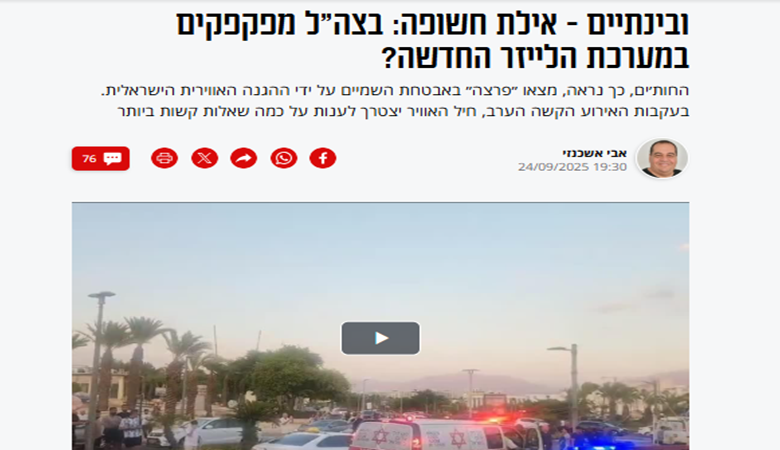 وختمت “معاريف” بالقول: إنَّ “هذه الثغرات تضع علامات استفهام كبيرة على قدرة سلاح الجو في تأمين مدينة سياحية تُعد من أهم واجهات (إسرائيل) أمام العالم”.