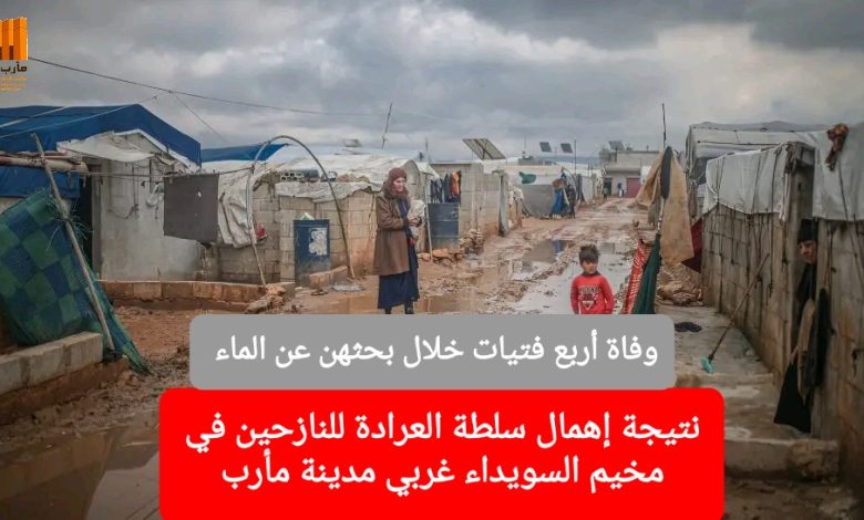 توفيت أربع فتيات غرقا في بركة ماء بالقرب من مخيم السويداء غربي مدينة مأرب ،خلال بحثهن عن الماء نتيجة إهمال سلطات الإرتزاق للنازحين في مخيم السويداء والعجز عن توفير مياه الشرب لهم.