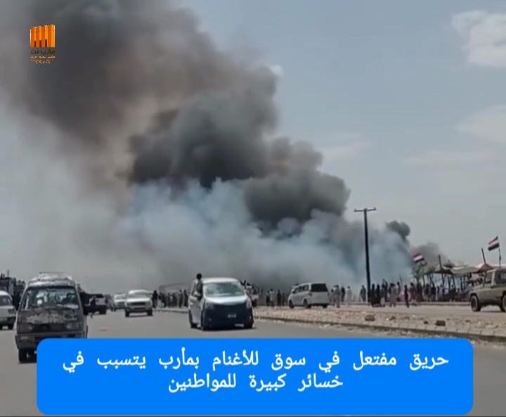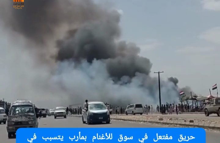 حريق مفتعل في سوق للأغنام بمدينة مأرب يتسبب في خسائر كبيرة للمواطنين