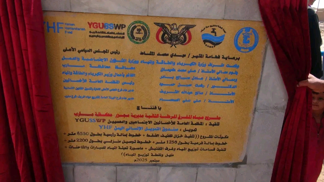 افتتح محافظ مأرب اللواء علي محمد طعيمان ونائب وزير الكهرباء والطاقة والمياه عادل بادر اليوم المرحلة الثانية من مشروع توسعة شبكة مياه المفرق في مديرية مجزر بمحافظة مأرب، بتكلفة 114 ألف دولار، بدعم صندوق التمويل الإنساني في اليمن.