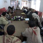 وتطرق الاجتماع إلى التحديات التي تواجه سير العمل في القطاعات الخدمية وسبل الارتقاء بمستوى الأداء، وتعزيز الموارد المحلية وتشجيع المزارعين للتوسع في زراعة الأراضي الخصبة ، وسير العمل في تنفيذ المشاريع التنموية والخدمية.