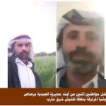 قتل مواطنين اثنين من قبيلة آل الثابتي ، برصاص مرتزقة العدوان الأمريكي السعودي في نقطة تفتيش بصافر شرق مأرب.
