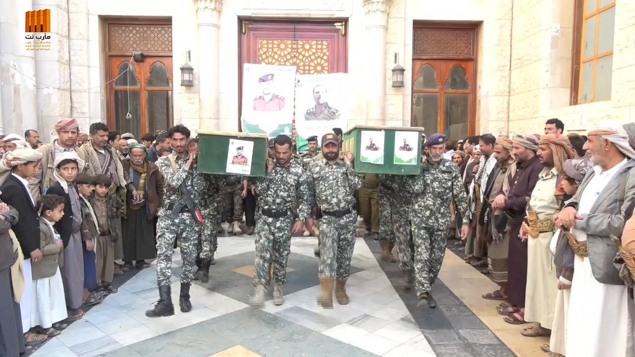 تشييع جثماني الشهيدين ناصر الجابري ولؤي سالم من منتسبي شرطة محافظة مأرب