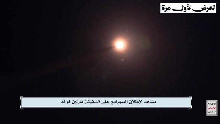 وزع الإعلام الحربي، اليوم الاثنين، مشاهد تعرض لأول مرة مشاهد إطلاق الصواريخ على السفينة البريطانية “مارلين لواندا” في خليج عدن
