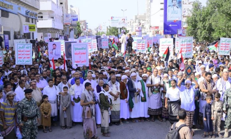 وجدد أبناء الحديدة استعدادهم للخروج في المسيرات ورفع الجهوزية ووتيرة التعبئة العامة ضمن الموقف اليمني الداعم والمساند للشعب الفلسطيني، والتأكيد على أن هذا الالتزام، هو خيار مبدئي ينبع من الهوية الإيمانية، وأنه لا يقبل التراجع أو المساومة مهما اشتدت التحديات.