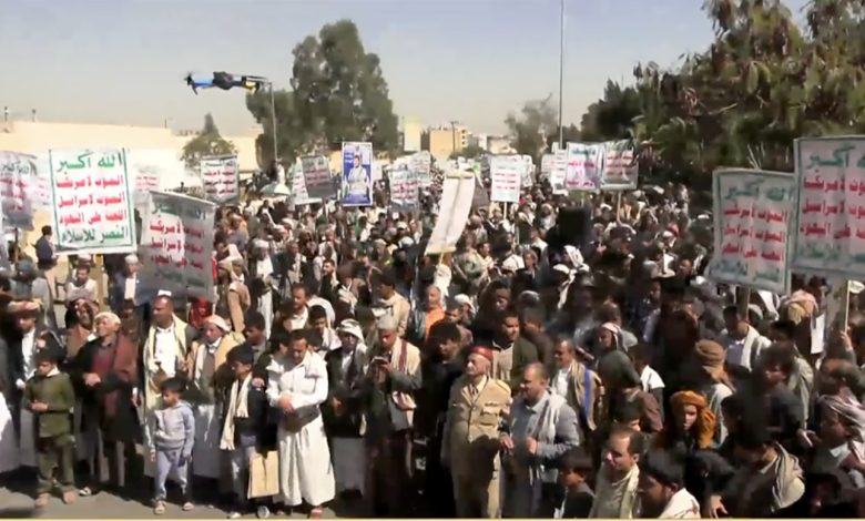 شهدت العاصمة صنعاء اليوم الأربعاء، خروج مسيرة جماهيرية حاشدة أمام مبنى السفارة الأمريكية، احتفالاً بذكرى الحادي عشر من فبراير، اليوم الذي يُخلّد خروج قوات المارينز الأمريكي من اليمن في مشهد وُصف بالخروج المذل للأمريكان بعد سنوات من التدخل والوصاية.