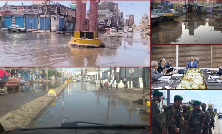 وتداول نشطاء في مدينة عدن، ووسائل إعلامية تابعة للعدوان، صوراً تظهر شوارع المدينة وهي غارقة بمياه الصرف الصحي، الأمر الذي ينذر بتفشي الأمراض والأوبئة، لا سيما مع بدء الارتفاع التدريجي في درجات الحرارة.