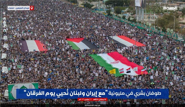 طوفان بشري يغمر ميدان السبعين في يوم الفرقان تأكيداً للعهد ونصرةً للمقاومة