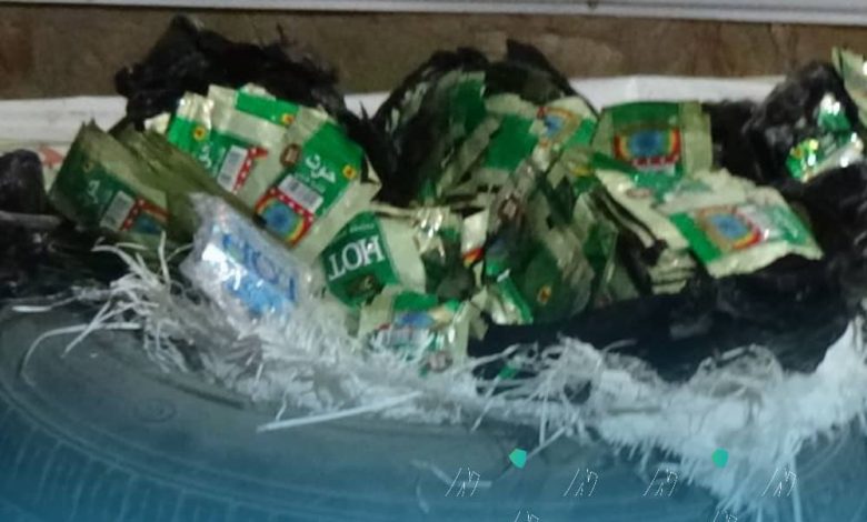 وأوضح مدير مركز الراهدة الجمركي محمد الجبري أن المضبوطات بلغت أربعة طرود تحتوي على 10,395 قرطاس تبغ حوت بلد المنشأ الصين، حيث جرى إخفاؤها بطرق تمويهية متعددة داخل الباص بهدف تضليل رجال الضابطة الجمركية والتهرب من إجراءات التفتيش.