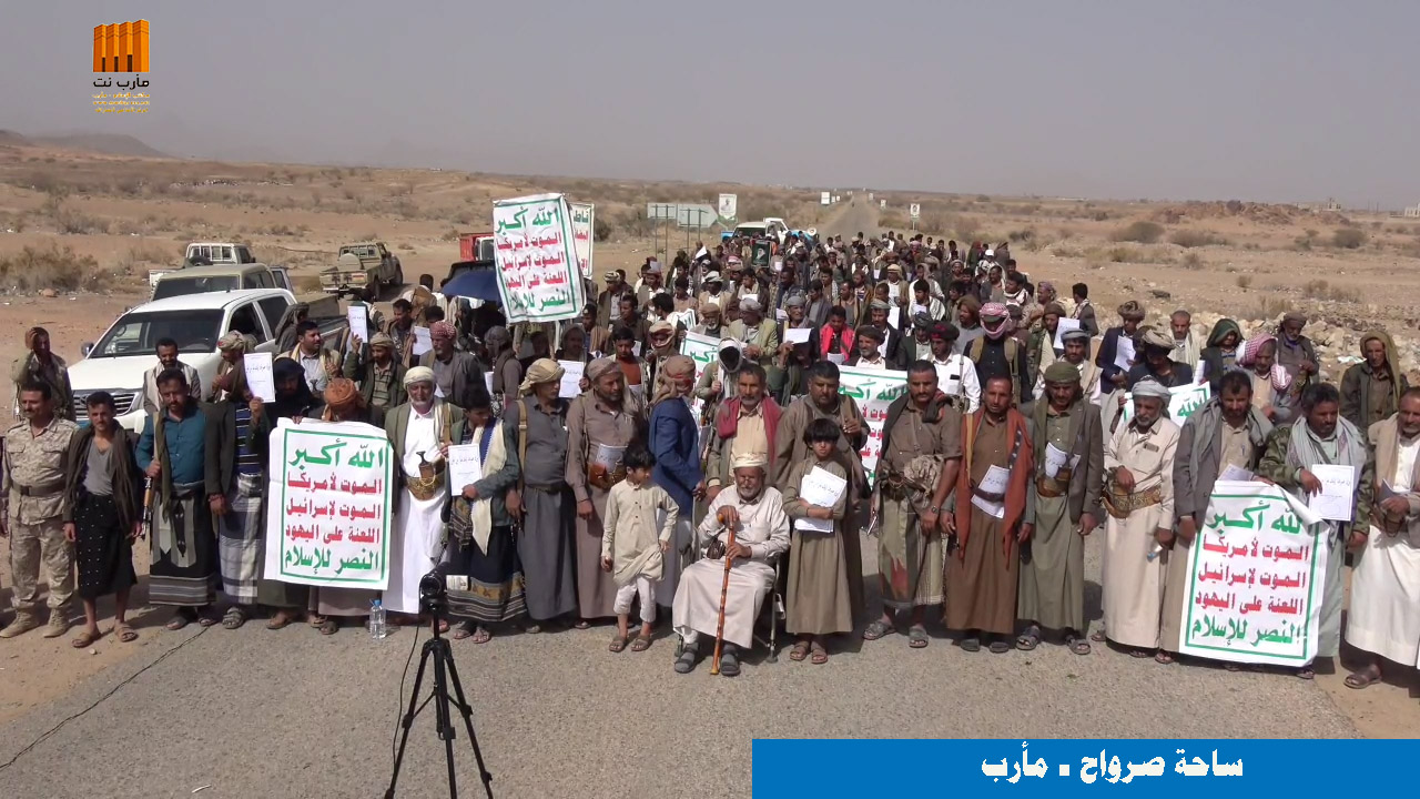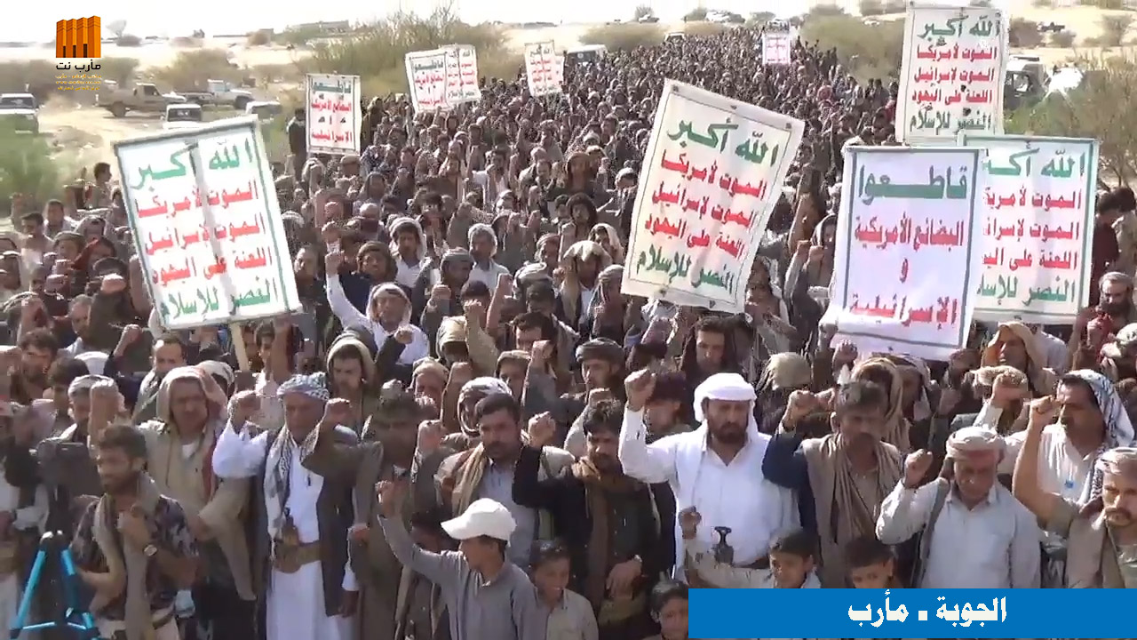 شهدت مديريات محافظة مأرب اليوم 17 مسيرة حاشدة وعشرات الوقفات تحت شعار ” محور واحد صف واحد في مواجهة الطغيان الأمريكي”.
