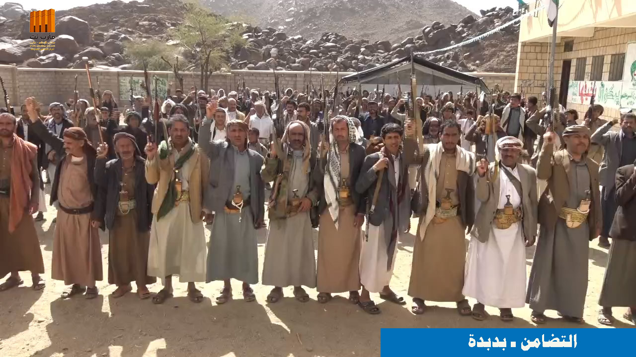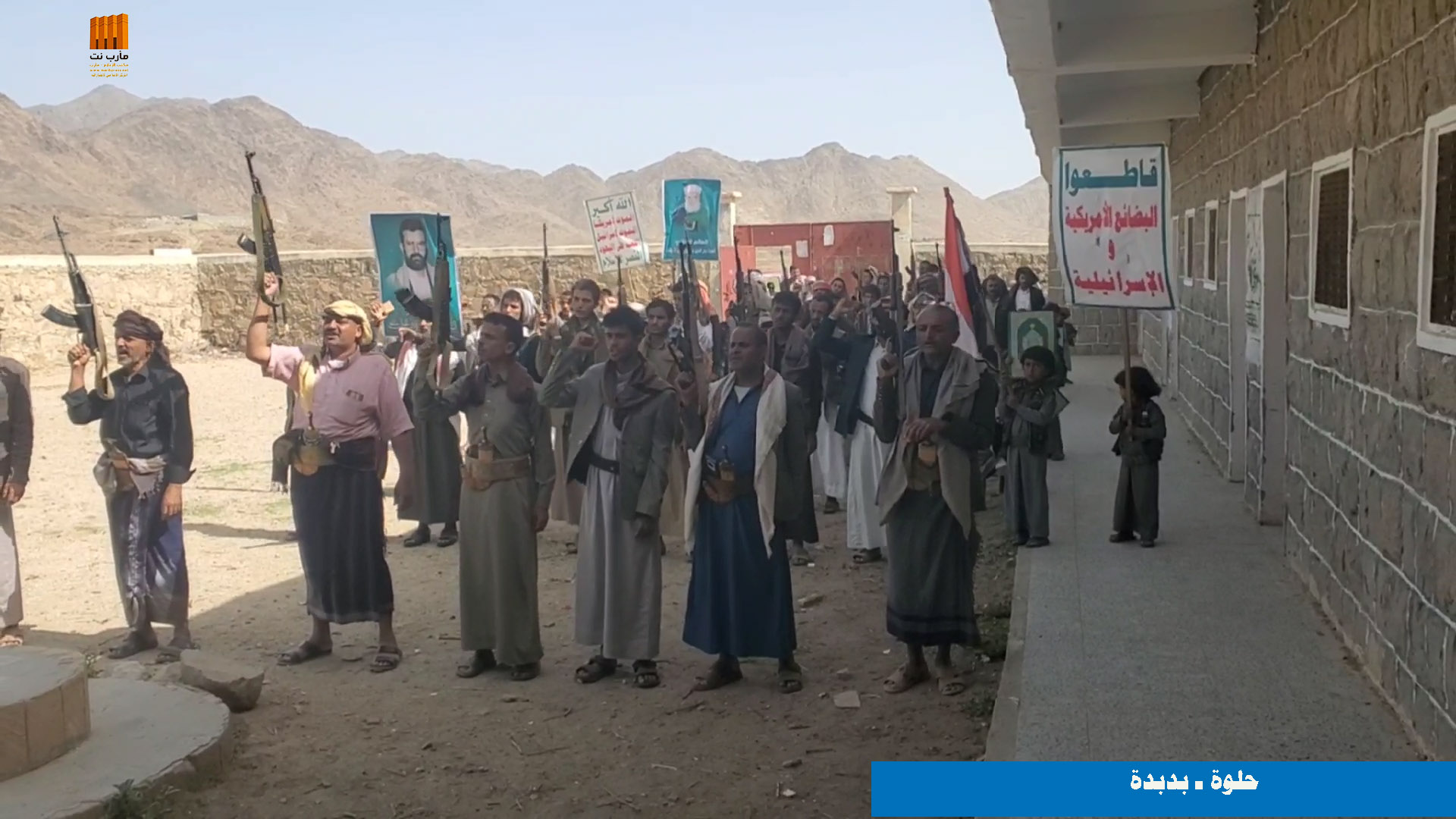 ونظم أبناء مديرية بدبدة مسيرتين بساحتي التضامن وحلوه، دعوا خلالها شعوب الأمة العربية والإسلامية للصحوة والالتفاف خلف محور المقاومة لإجهاض ومواجهة المخططات والمشاريع الصهيونية الأمريكية التي تستهدف الجميع.