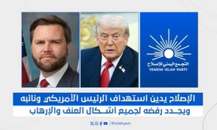 وكان حزب الإصلاح قد قال في بيانه إنه “يدين بأشد العبارات” الهجوم الذي استهدف الفعالية التي حضرها ترامب ونائبه جيه دي فانس خلال العشاء السنوي للمراسلين في البيت الأبيض، مؤكدًا “رفضه القاطع لجميع أشكال العنف والإرهاب”، ومعلنًا “تضامنه الكامل مع الولايات المتحدة الأمريكية الصديقة” في مواجهة ما وصفها بـ”الأعمال الإجرامية”.