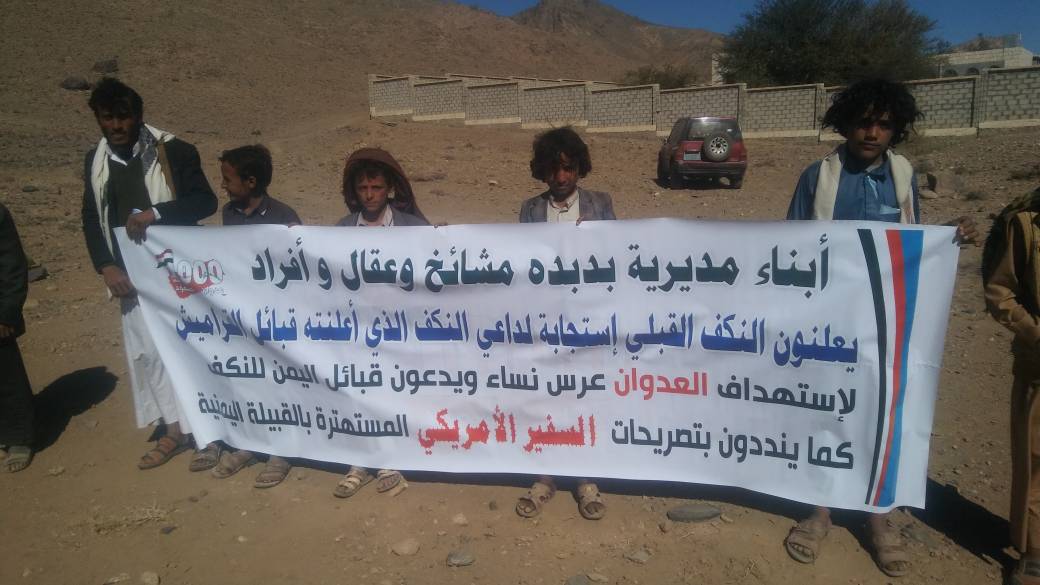 وأرسلت قبائل بدبدة نكفها القبلي لكل القبائل اليمنية لمواجهة قوى العدوان و الأخذ الثأر في إستهداف النساء والأطفال في مديرية حريب القراميش محافظة مأرب والذي يوجب على جميع قبائل اليمن الغيارى على العرض والكرامة والشرف الأخذ بالثأر كون النساء هن عرض وكرامة وشرف كل قبائل اليمن وأحرارها .